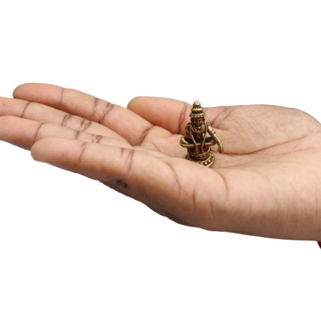 Bring home blessings and spiritual strength with this intricately crafted Brass Idol of Lord Ayyappa, shown in his traditional yogic sitting posture. Lord Ayyappan symbolizes discipline, devotion, and righteousness. This compact brass statue is ideal for home temples, meditation corners, car dashboards, or as a divine gift during festivals or pilgrimages like Sabarimala Yatra.